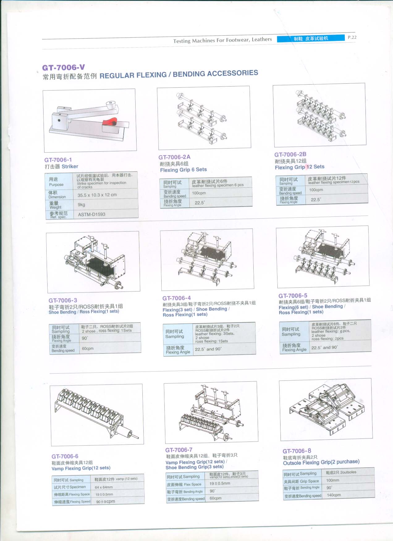If you want to do the other test in the same test chamber at the same time, we also can custom made the grip or fixture for you. like Vamp flexing, finished shoe bending grip, Leather flex cracking, Ross flexing or bending.